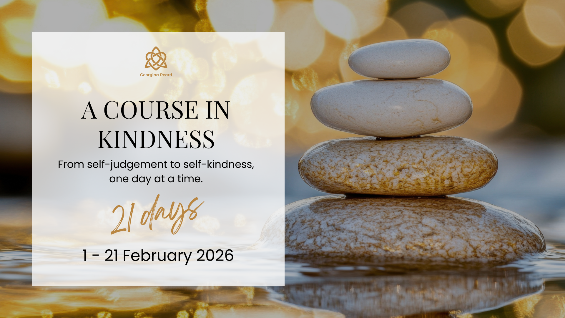 A Course in Kindness: From Self-Judgment to Self-Kindness is a 21-day audio journey to gently rewire your inner dialogue and reconnect you with your breath, body, and deeper truth.